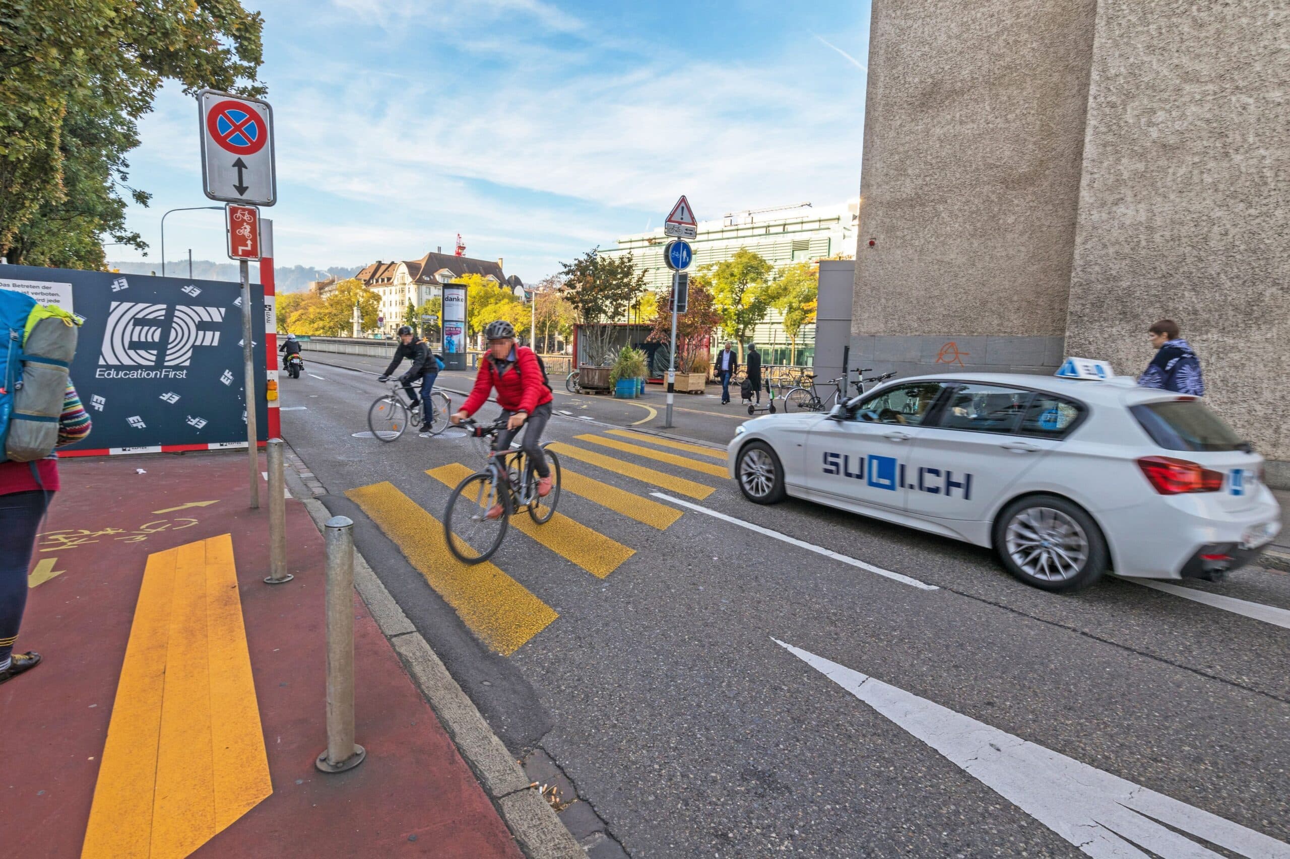 Oft stoppen Autolenkende am Fussgängerstreifen für fahrende Velos. Aber darf das Velo eigentlich den Zebrastreifen nutzen und hat dann Vortritt? Diese Frage ist am Ende